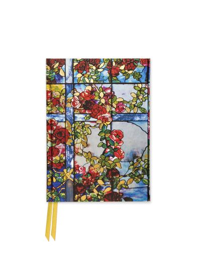 Part of a series of handy, luxurious Flame Tree Pocket Books. Combining high-quality production with magnificent fine art, the covers are printed on foil in five colours, embossed then foil stamped. And they’re delightfully practical: a pocket at the back for receipts and scraps, two bookmarks and a solid magnetic side flap. These are perfect for personal use, handbags and make a dazzling gift. This example is based on ‘Trellised Rambler Roses’ by Tiffany Studios. The art industry of Tiffany came to epitomize much of the glory of the Art Nouveau era. Nature was one of the key inspirations for Louis Comfort Tiffany (1848-1933), and he designed and built beautiful gardens for the purpose of studying the colours and shapes which continually influenced his work.